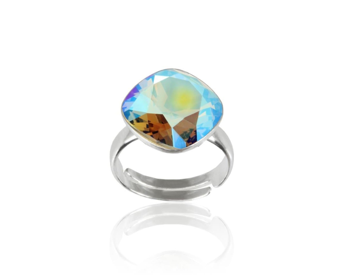 - Inel din argint 925 lucrat manual cu un cristal Primero patrat black diamond shimmer de 11/11mm