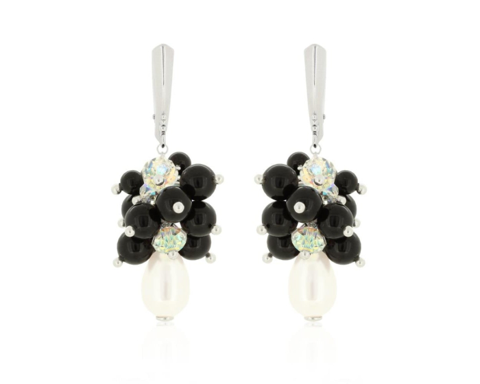 Cercei din argint 925 cu perle Primero YEM213 Mystic Black&White