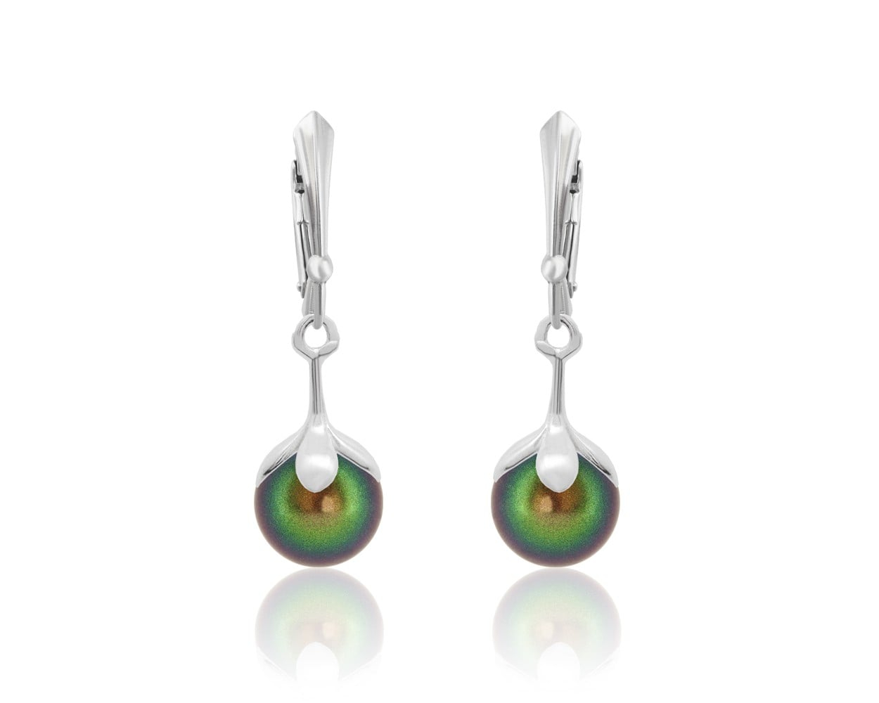 Cercei din argint 925 cu perle Primero YEM241 Scarabaeus Green