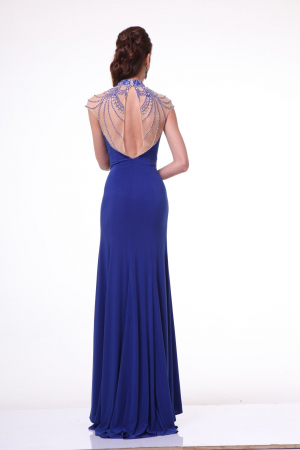 Ladivine Rochie Ladivine 8105 albastru royal de seara in clos din jerse